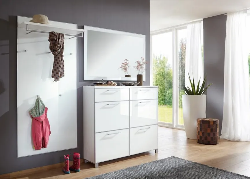 - Garderobe aus Garderobenpaneel, Schuhschrank und Spiegel