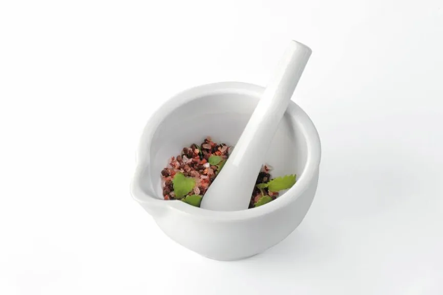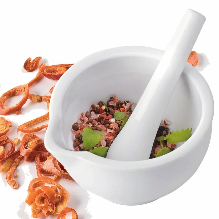 Schon die Zubereitung leckerer Kräuterpasten oder Pestos macht mit dem Mörser Macino der Marke GEFU Spaß. Gewürze und Kräuter werden frisch zerstoßen und zermahlen, wobei das Aroma für den vollen Genuss erhalten bleibt. Gewürzmischungen eigener Kreation gelingen mühelos im Mörser Macino von GEFU.