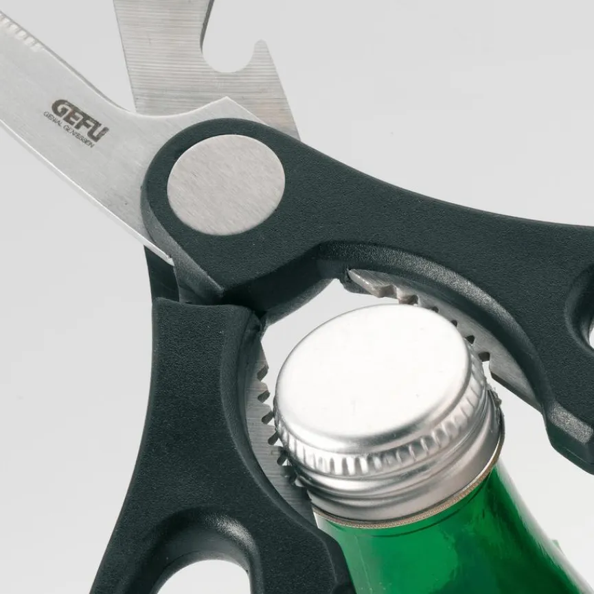 Die hochwertige Haushaltsschere Una des Herstellers GEFU leistet Ihnen nützliche Dienste, denn sie kann durchaus als Allzweck-Gadget bezeichnet werden. Einerseits ist sie eine präzise schneidende Schere. Andererseits lässt sich die Haushaltsschere Una von GEFU auch hervorragend zum Öffnen von Kronkorken oder Schraubverschlüssen verwenden.