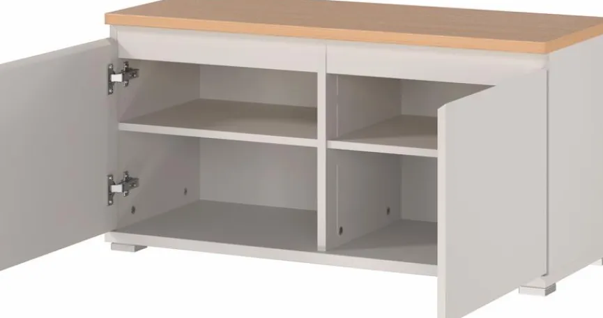 Beim Anziehen von Schuhen kann die Garderobenbank Carano aus dem Hause Germania eine praktische Hilfe sein. Zudem bietet Ihnen die Umkleidebank leicht zugänglichen Stauraum. Insbesondere als Ergänzung zum Wandpaneel aus diesem Programm stellt die modern designte und vielfältig kombinierbare Garderobenbank Carano eine sinnvolle Ergänzung dar.