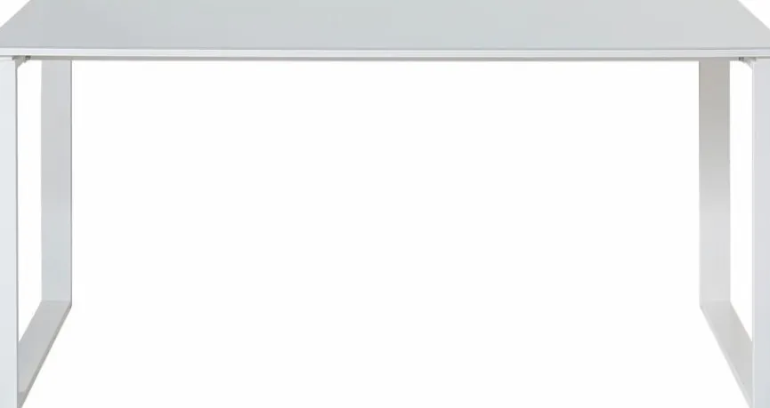 - Tischplatte aus Spanplatte mit Glasauflage aus Sicherheitsglas in weiß, Gestell aus pulverbeschichtetem Stahl in weiß