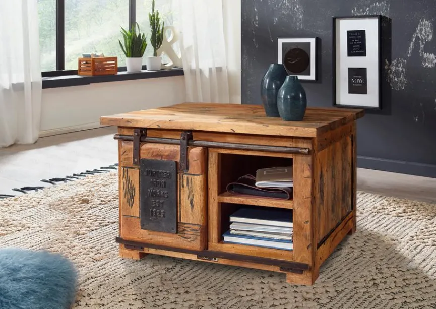 Der Couchtisch Railway ist nicht nur exzellent verarbeitet, sondern begeistert auch durch eine erfrischend andere Optik. Mit dem markant gemaserten Holz und den Elementen aus Eisen ist der Wohnzimmertisch ein echter Hingucker. Darüber hinaus bietet der Couchtisch Railway in mehreren Fächern viel praktischen Stauraum und sorgt für Ordnung