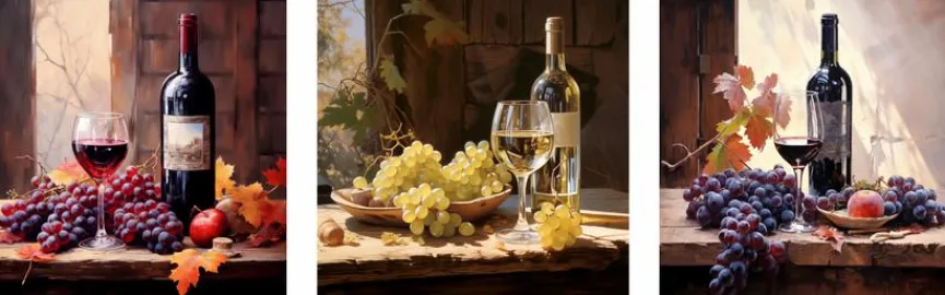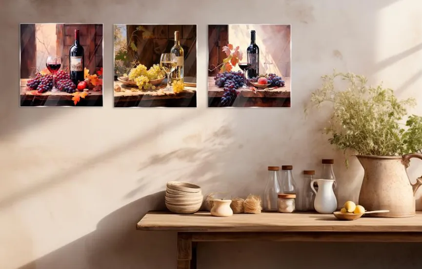 Glasbild 30 x 90 cm Wine Painted I 3tlg. Bilder Ohne Rahmen