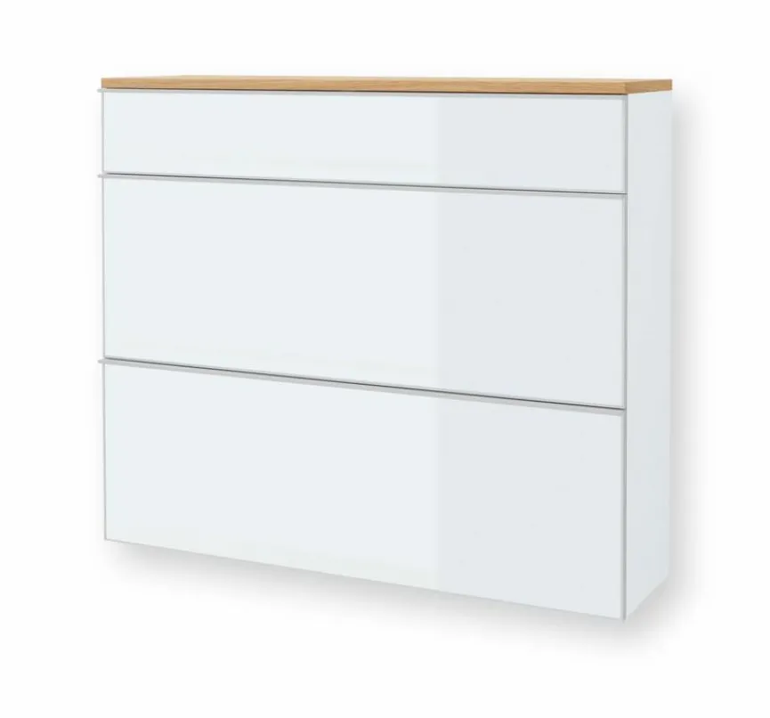 Mit seiner eleganten, zeitlosen und hochwertigen Ausstrahlung ist der Hängeschuhschrank Gardone von Voss Möbel ein Lieblingsstück, das Ihnen lange Freude bereitet. In der Schublade und hinter den beiden Klappen mit verstellbaren Einlegeböden verbirgt sich viel Platz für eine umfangreiche Schuhsammlung und verschiedene Accessoires. Der Hängeschuhschrank Gardone bereichert jeden Flur und harmoniert wunderbar mit weiteren Stücken der Serie.