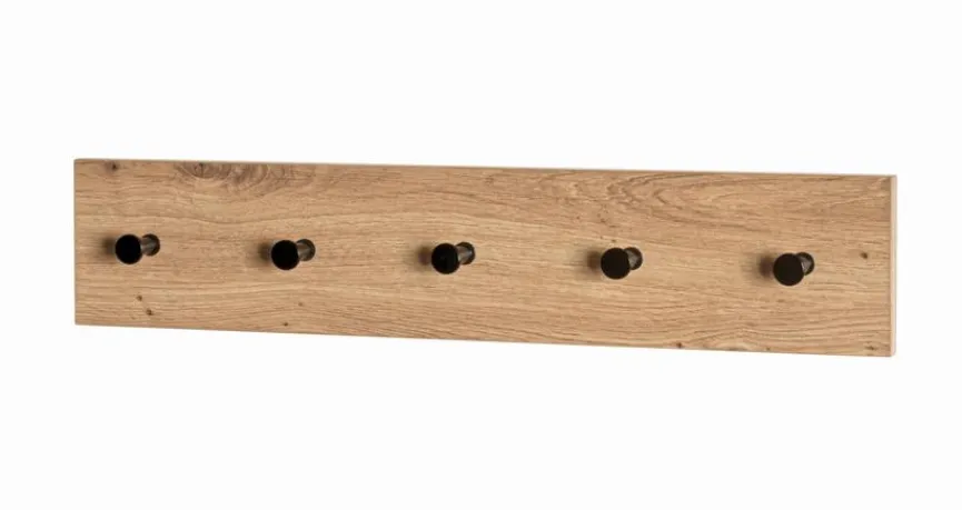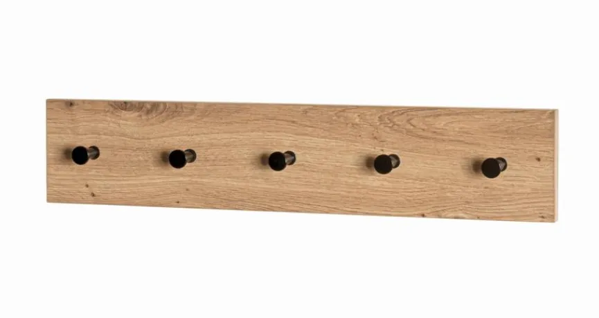 Bringen Sie mit der Garderobenleiste Parma von Haku Ordnung und Eleganz in Ihren Flur. Die Hakenleiste in Artisan-Eiche bietet Ihnen fünf Metallhaken für Jacken, Mäntel, Hüte, Schals und vieles mehr. Außerdem fügt sich die Garderobenleiste Parma nahtlos in Ihr Wohnambiente ein und ist ein unverzichtbares Accessoire für einen organisierten Eingangsbereich.