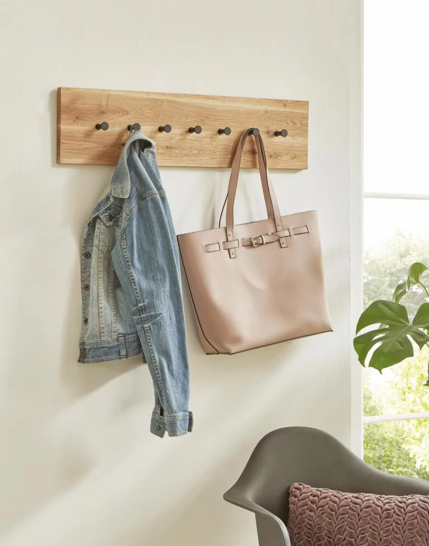 Die Garderobenleiste Turin aus dem Hause Haku sieht nicht nur elegant aus, sondern ist auch ausgesprochen praktisch. Markantes Detail im Design der Hakenleiste ist die ausdrucksstarke Maserung des Holzes. Darüber hinaus bietet die Garderobenleiste Turin von Haku ausreichend Platz zum Aufhängen von Jacken, Taschen und anderen Gegenständen.