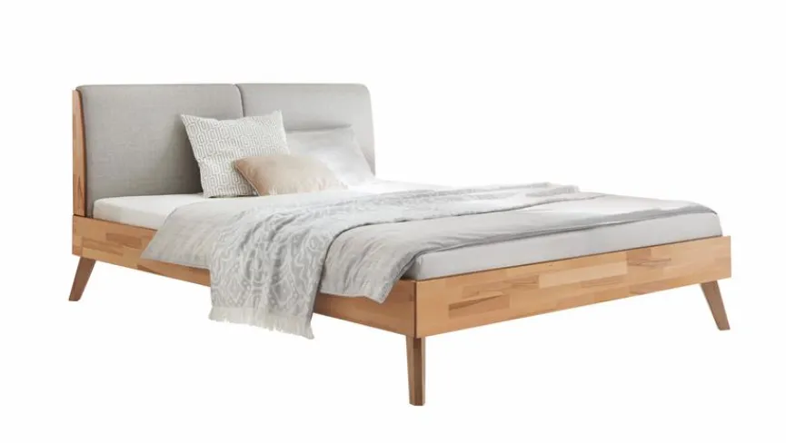 - Inklusive Polsterkopfteil mit Stoffbezug in grau