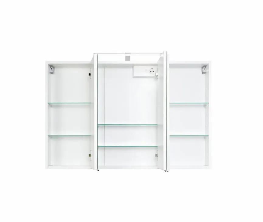 Mit dem Spiegelschrank Florida präsentiert Held-Möbel ein Badmobiliar in schlicht edlem Design. Der Schrank setzt sich aus drei Spiegel-, sowie sechs Glaseinlegeböden zusammen und ist durch das zeitlose Aussehen mit sämtlichen Möbeln kombinierbar. Zusätzlich ist der Held-Möbel Spiegelschrank Florida mit einer LED-Leuchte versehen, welche das Mobiliar modern erscheinen lässt.