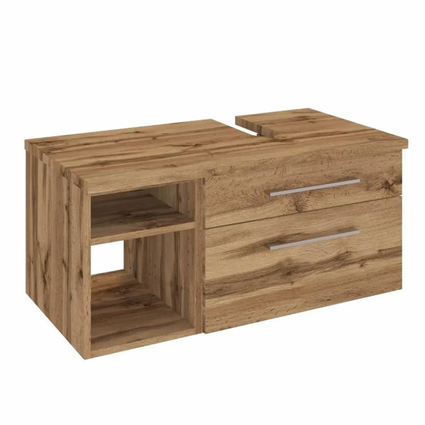 Mit dem Waschbeckenunterschrank Davos wird der Platz unter dem Becken sinnvoll genutzt. Dank der Kombination aus Schubkasten, Auszug und Regal lassen sich zahlreiche Kosmetik- und Badutensilien problemlos verstauen. Der Waschbeckenunterschrank überzeugt zudem durch sein stylisches und zeitloses Design.