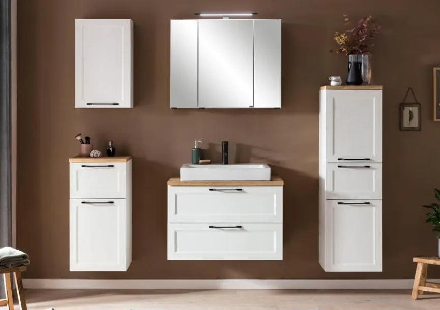 Mit der Waschtischkombination Brixen der Marke Held-Möbel erhalten Sie ein äußerst stilvolles Einrichtungselement für Ihr Badezimmer. Der mit viel Liebe zum Detail gestaltete Landhauslook wirkt sehr dekorativ und verleiht dem Raum ein charmantes Ambiente. Zudem zeichnet sich die Waschtischkombination Brixen durch eine erstklassige Material- und Verarbeitungsqualität aus.