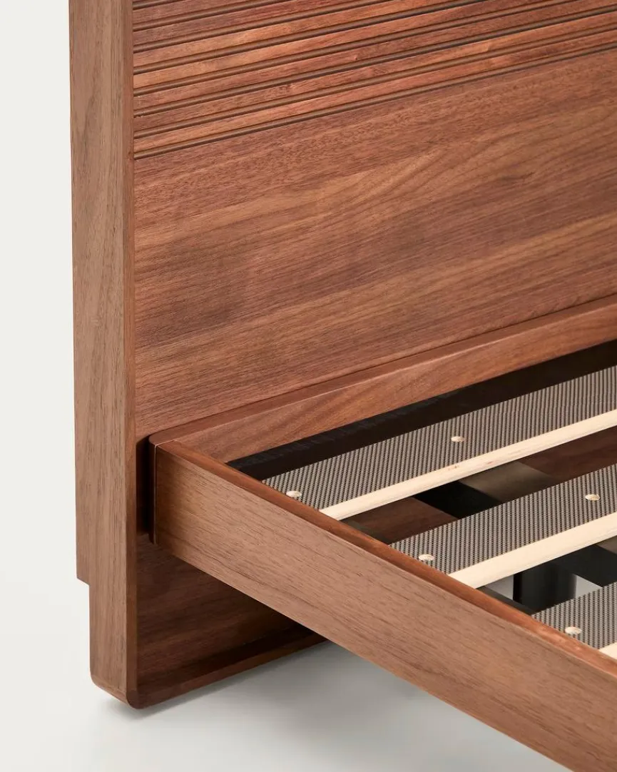 - Aus Holzwerkstoff (MDF) mit Nussbaumfurnier in dunkel