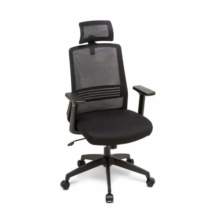 - Inkl. Kopfstütze und Armlehnen aus Kunststoff in schwarz