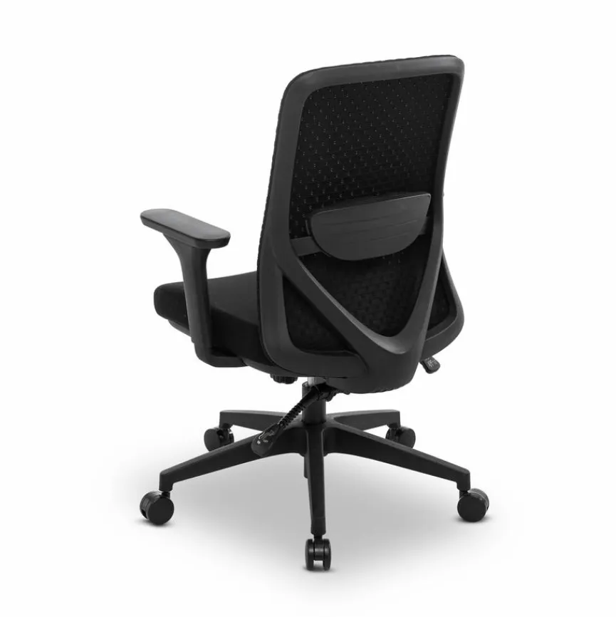 - Mit Synchron-Mechanismus, einstellbarer Lordosenstütze und Rücken mit stufenloser Arretierung