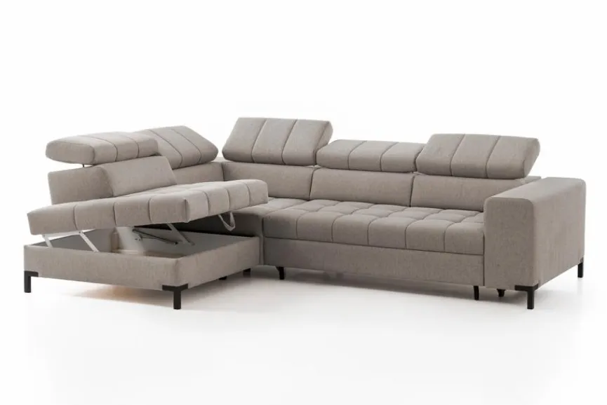 - Ecksofa besteht aus Abschlusselement links, Spitzecke, 2-Sitzer mit Armlehne rechts