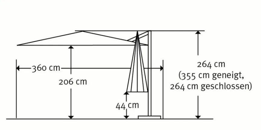 - Bezug abnehmbar und inkl. lichtundurchlässiger Schutzhülle mit Reißverschluss und Stab