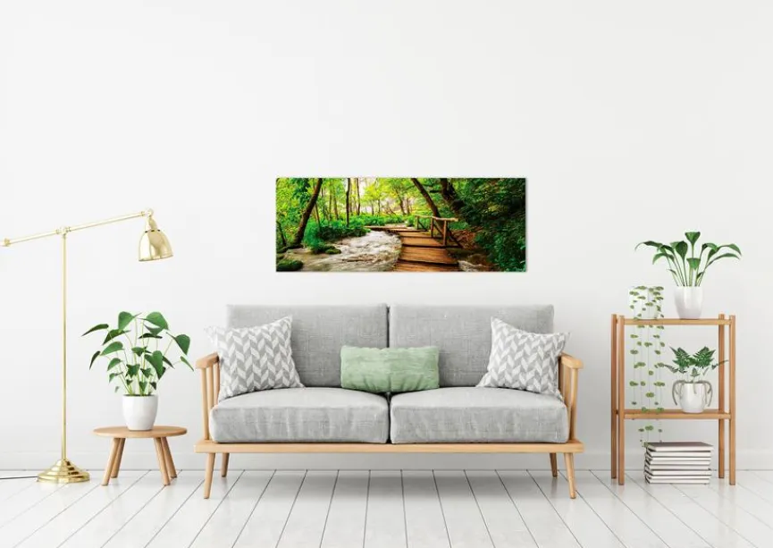 Das Wandbild 30×80 cm Footbridge in the forest der Marke EUROART kreiert mit seinem Naturpanorama ein harmonisches und entspannendes Raumambiente. Sie können das Deko Bild beispielsweise im Wohnzimmer, im Flur und im Büro als Akzent einsetzen. Holen auch Sie sich mit dem Wandbild 30×80 cm Footbridge in the forest von EUROART ein Stück Natur in Ihr Zuhause!