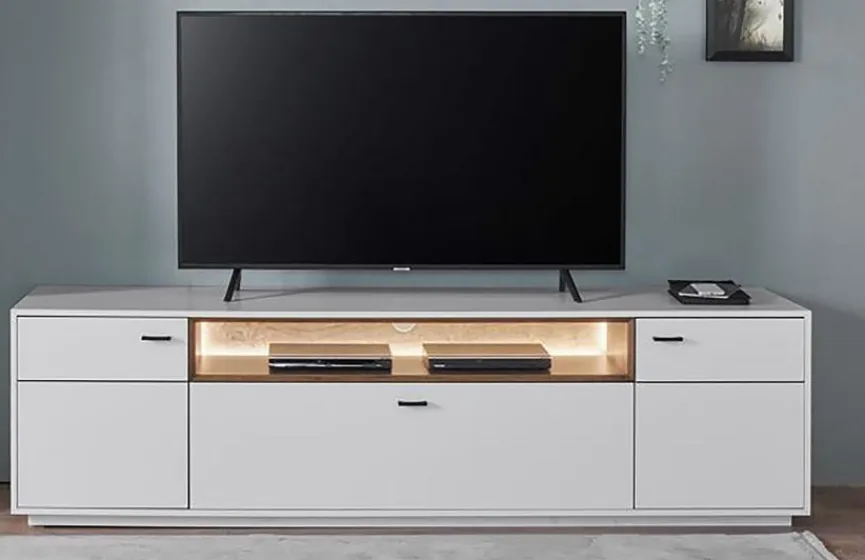 - Mit 2 Türen, 1 Schubkasten, 1 offenes Fach und 2 Einlegeböden