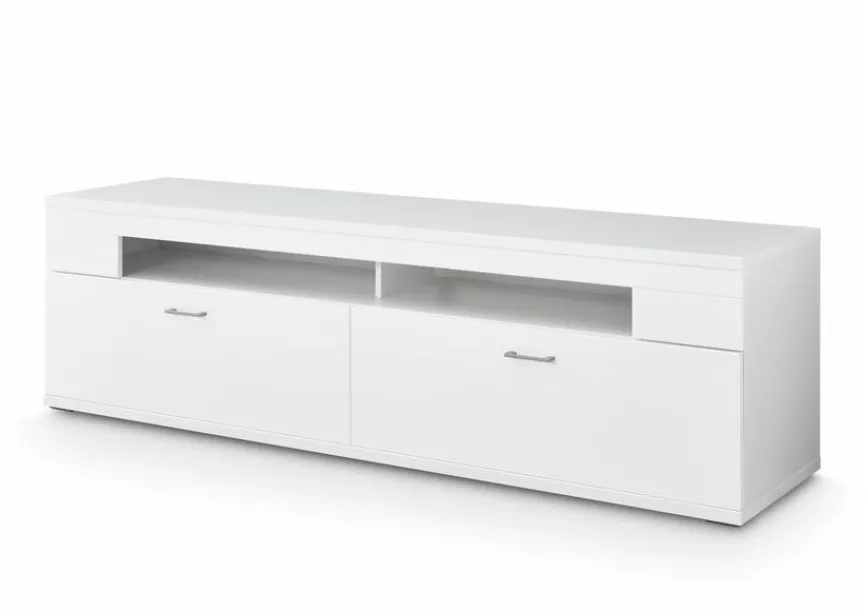 Das TV-Lowboard Topeka ist nicht nur funktionell, sondern überzeugt auch in puncto Optik. Geradlinige Formen und ein unifarbener Anstrich verleihen dem TV-Unterschrank ein sehr attraktives Äußeres. Darüber hinaus bietet das TV-Lowboard Topeka im Inneren viel Stauraum für Fernbedienungen, Zeitungen und andere Gegenstände.