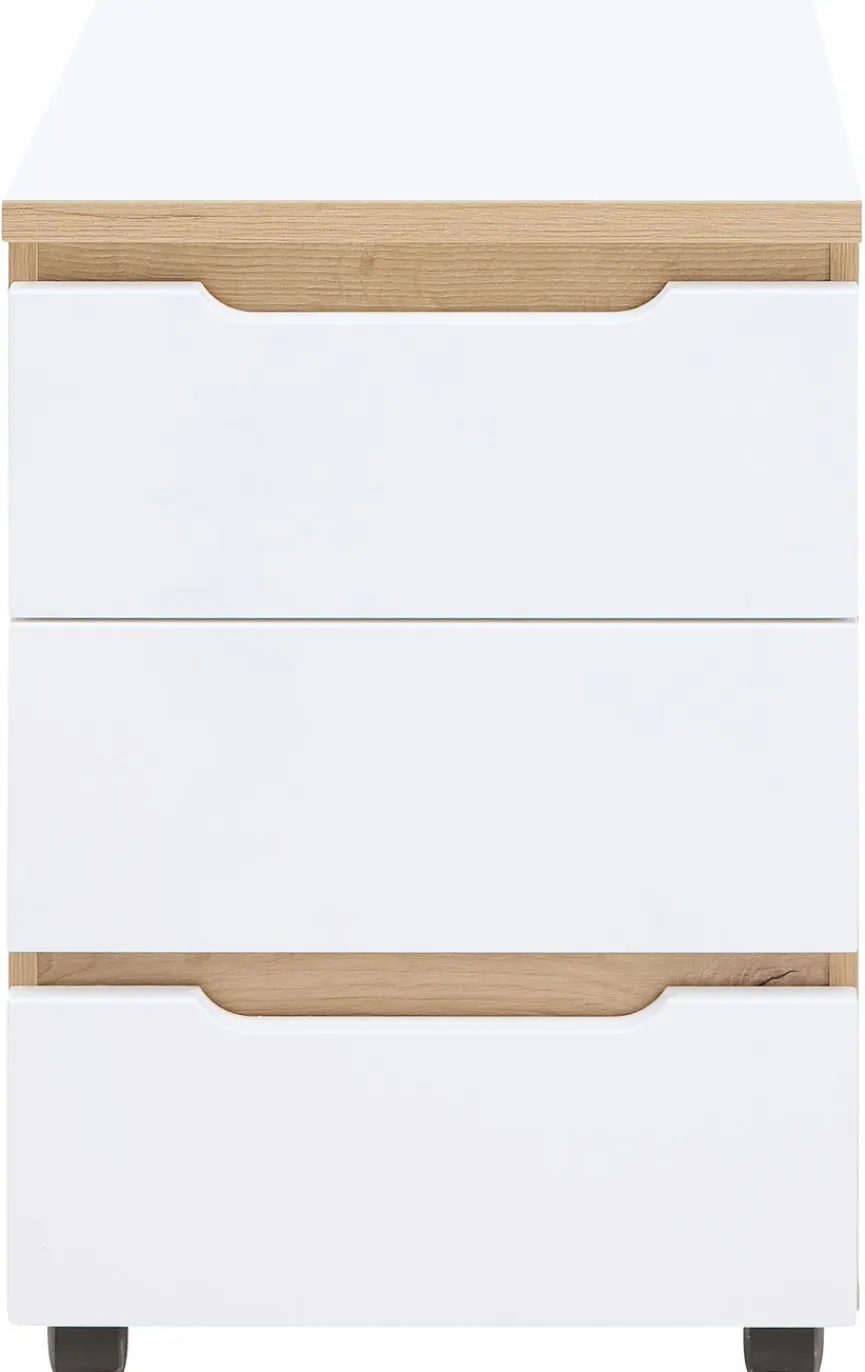 - Mit 3 Schubkasten, 2 Rollen mit Bremse und 2 Rollen mit Bremse