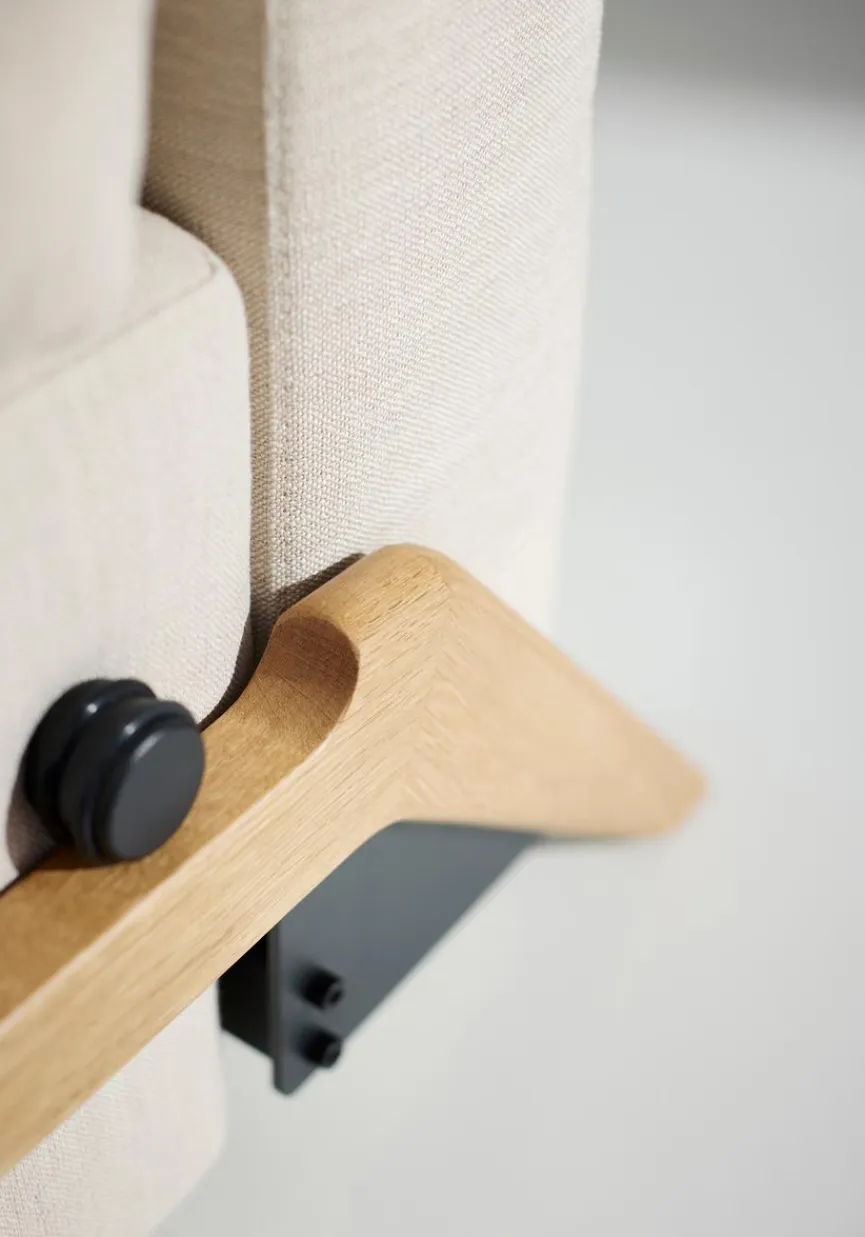 - Bezug aus Stoff (blida) in sand grey (612), Füße aus massivem Eichenholz lackiert