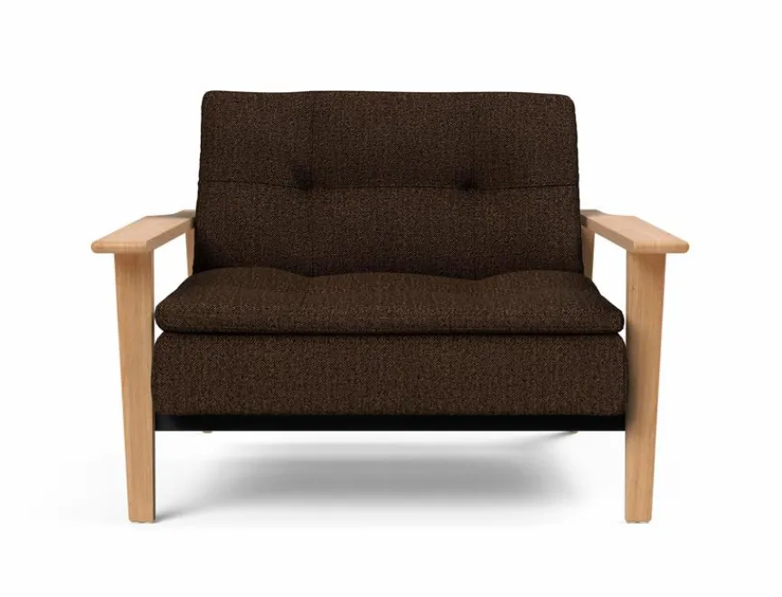 - Bezug aus Stoff (taura) in chocco (358), Füße und Armlehnen aus massivem Eichenholz lackiert