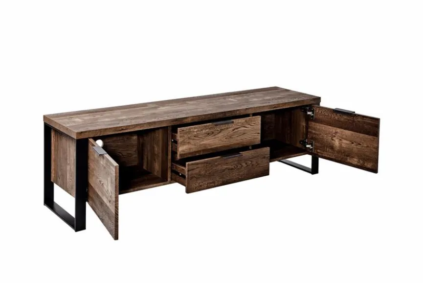 Für den modernen Wohnstil ist das TV-Lowboard Loop die perfekte Wahl. Das Gestell und die Griffe in Gun-Metall-Optik prägen den originellen Look dieses TV-Unterschrankes. Zudem bietet Ihnen das TV-Lowboard Loop nicht nur eine Abstellfläche für Ihr Fernsehgerät, sondern auch viel praktischen Stauraum für diverse Utensilien und Medienzubehör.