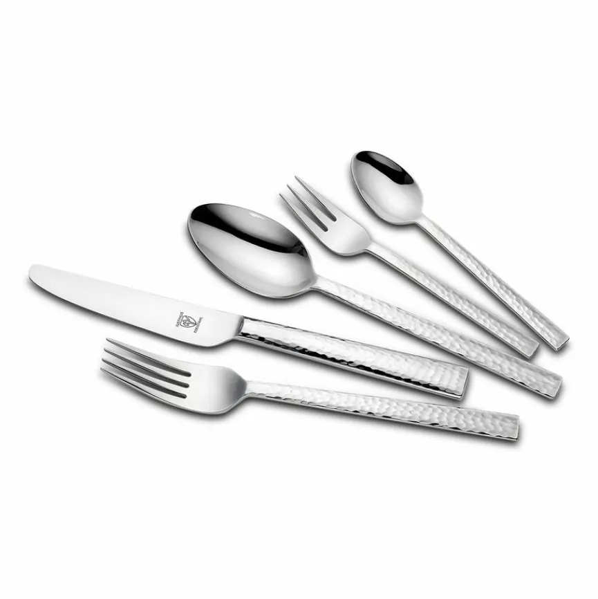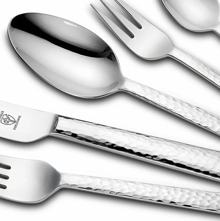 Eine klare Formgebung und Griffe mit gehämmertem Oberflächen-Design – diese Eigenschaften verschaffen dem Besteck Beat 60tlg. von Justinus eine moderne und attraktive Optik. Dank der ergonomischen Griffe liegt das Tafelbesteck hervorragend in der Hand. Darüber hinaus überzeugt das Besteck Beat 60tlg. von Justinus durch eine hohe Materialqualität.