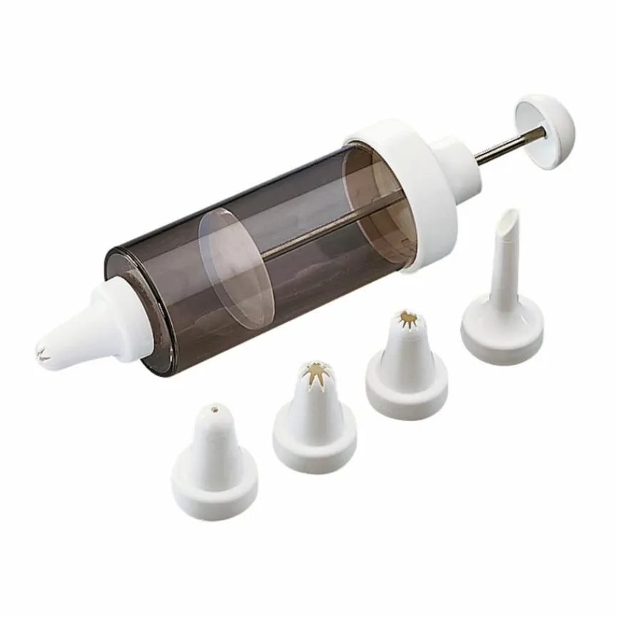 - Artikel beinhaltet 1x Gebäckspritze und 5x Spritztüllen (Loch-, Füll-, Stern-, Kronen-, Rosentülle)