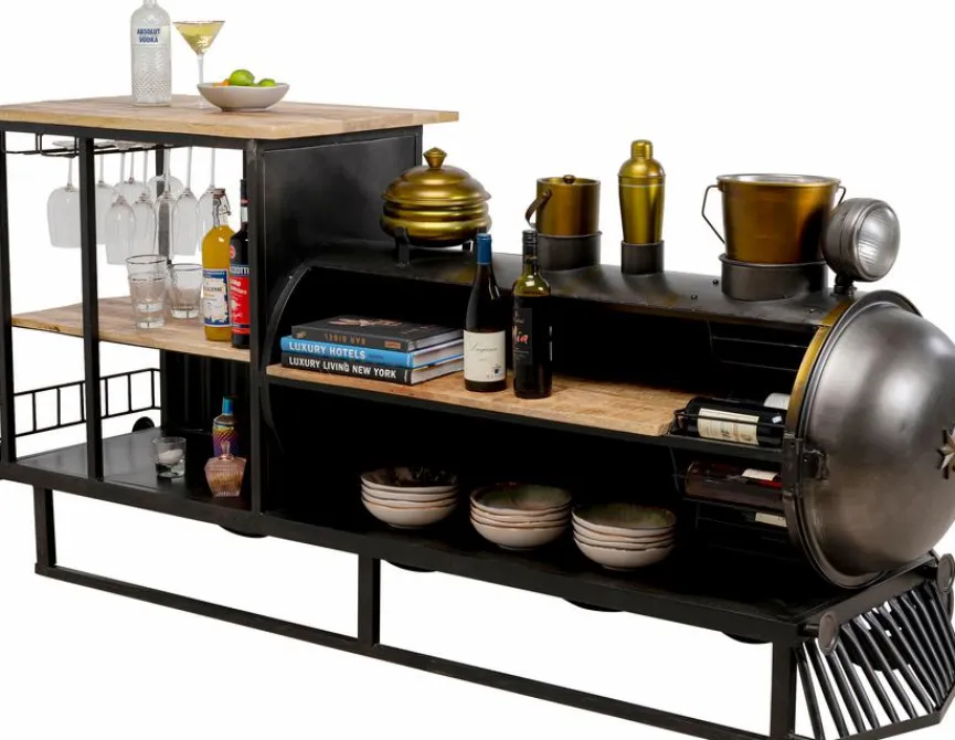 - Mit 2 Glashalter für 10 Gläser, 1 Sektkühler, 1 Weinkühler, 1 Shaker und 1 geschlossenem Bahälter