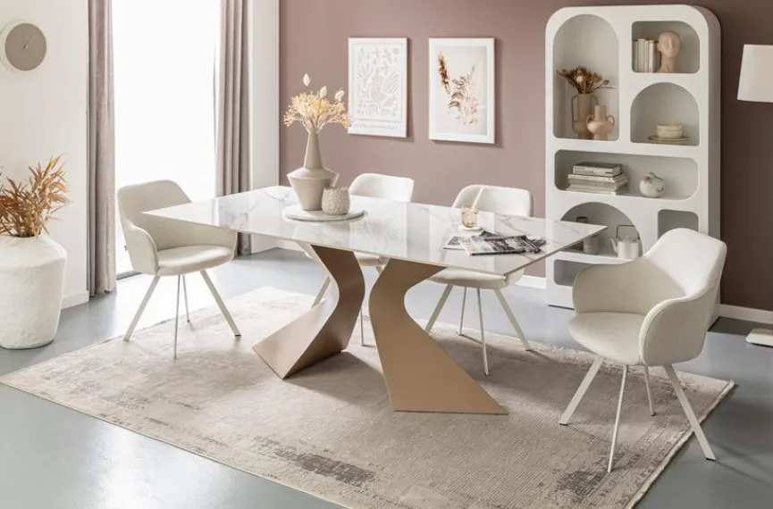 KARE DESIGN präsentiert mit dem Esstisch Gloria 200×100 cm ein Möbelstück, das gut zu einem modernen Einrichtungsstil passt. Dynamisch geschwungene Beine machen den hochwertigen, robusten Esszimmertisch zu einem standsicheren Hingucker. Am Esstisch Gloria 200×100 cm finden bis zu acht Personen Platz, um gemeinsam miteinander zu tafeln oder sich auszutauschen.