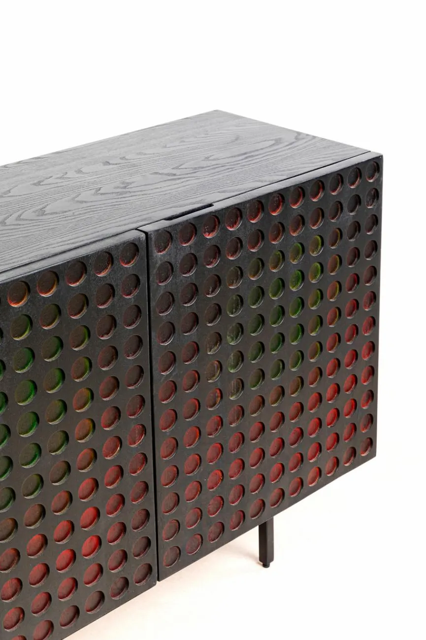 Das Sideboard Click Clack 87183 von KARE DESIGN ist ein Unikat und wird Sie mit seiner handgefertigten Qualität begeistern. Die gestempelten Kreise auf den Fronten verleihen ihm das gewisse Etwas und de Beine aus pulverbeschichtetem Stahl geben dem kleinen Sideboard Click Clack 87183 einen modernen Touch. Ob als TV-Board, Raumteiler oder Kommode – dieses Sideboard ist ein wahres Multitalent.