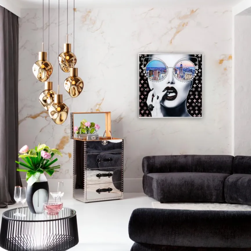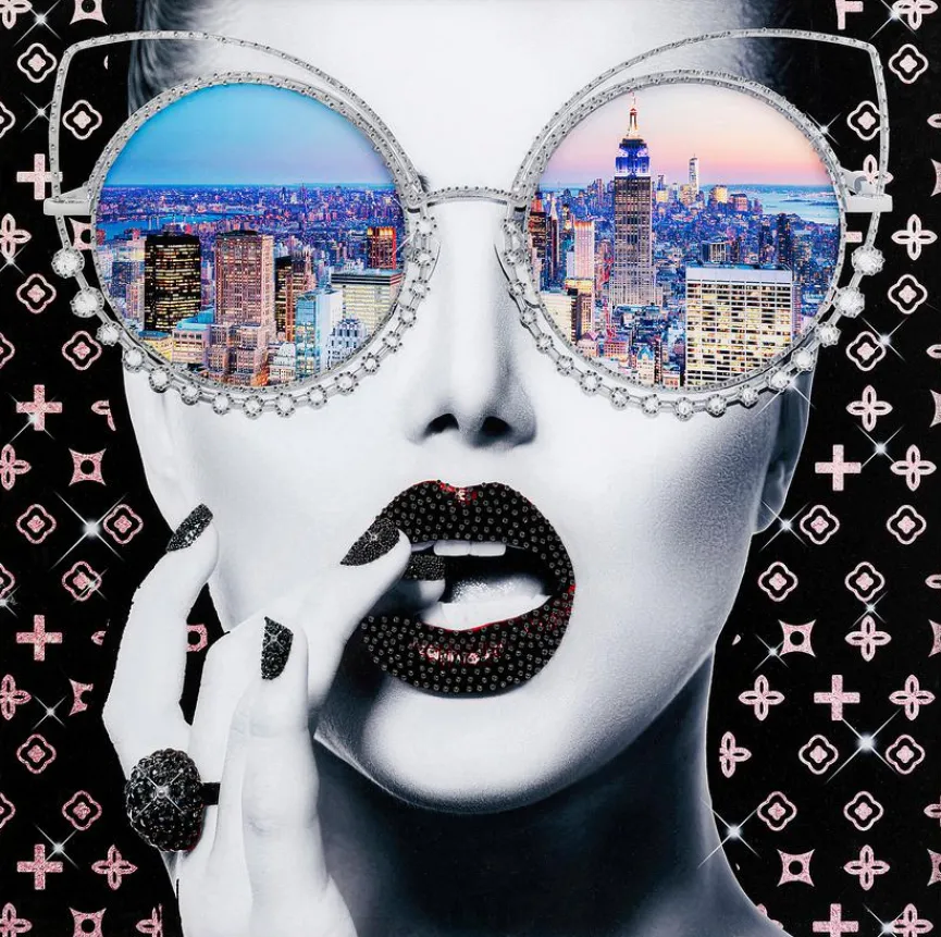 Das Wandbild 80×80 cm New York View 56414 von KARE DESIGN lenkt mit einem poppigen Gesichtsmotiv die Blicke auf sich. Funkelnde Strasssteinchen aus Glas verleihen dem Deko Bild einen glamourösen Twist. In ein Ambiente im Urban-Chic passt das Wandbild 80×80 cm New York View 56414 vorzüglich.