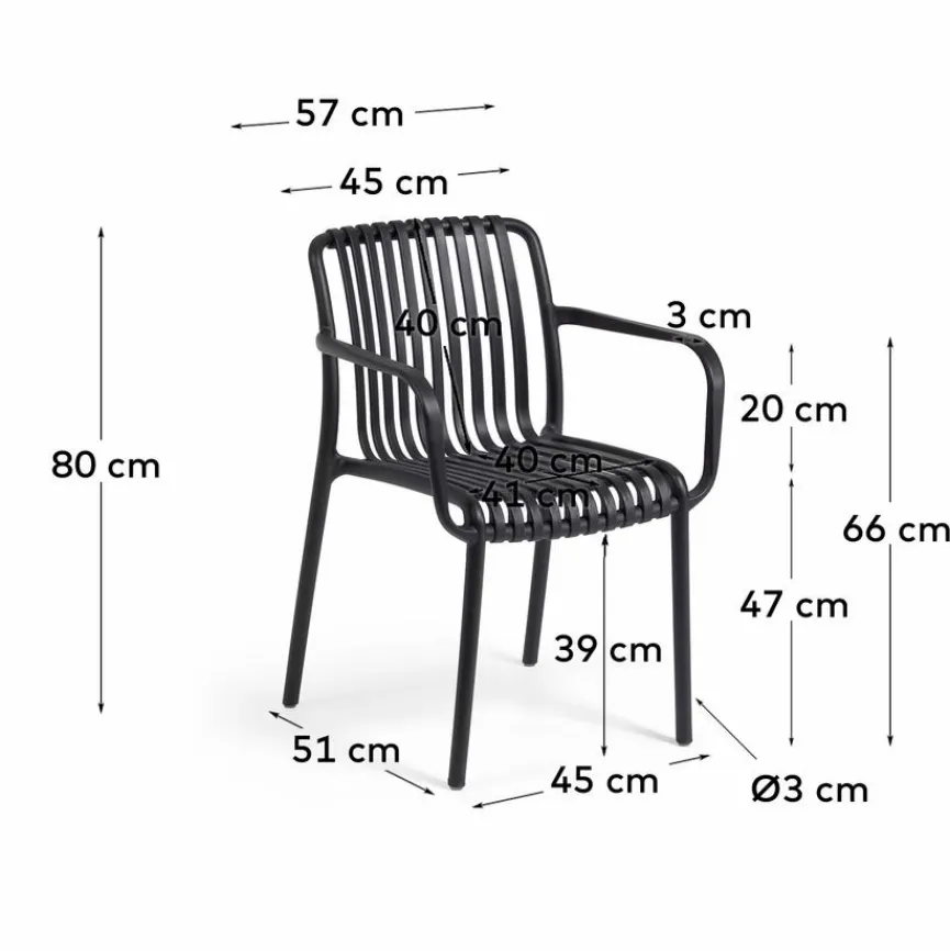 Der Stuhl Isabelini von Kave Home lenkt mit Charme und subtiler Eleganz die Blicke auf sich. Sowohl für den Innen- als auch für den Außenbereich stellt dieses fantastische Sitzmöbel eine Option dar. Praktisch ist zudem, dass sich der Stuhl Isabelini einfach pflegen lässt und platzsparend gestapelt werden kann.