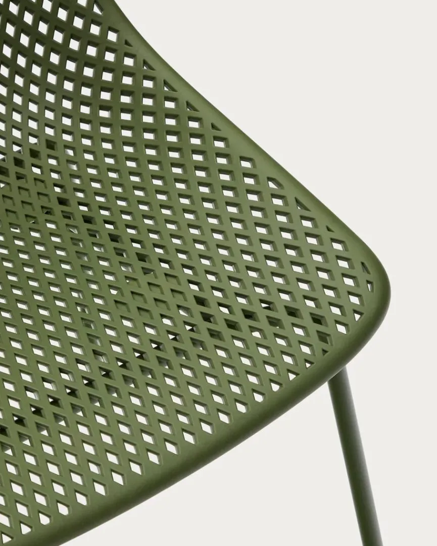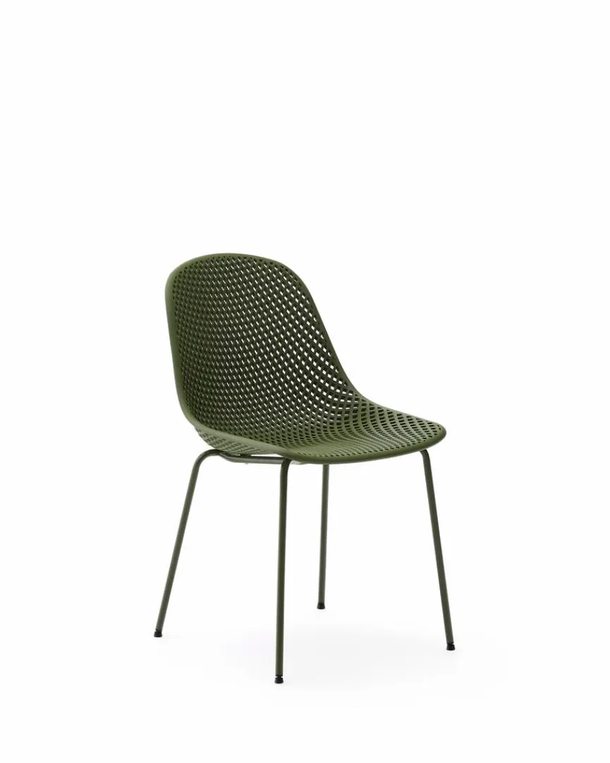 Dank seiner perforierten Sitzschale garantiert der Stuhl Quinbi von Kave Home ebenso gemütliche wie luftige Momente im Wohnbereich. Sein schlankes, dunkles und modernes Design überzeugt zudem auf ganzer Linie. Auch die variantenreichen Kombinationsmöglichkeiten erweisen sich als vorteilhaft, sobald Sie den Kave Home Stuhl Quinbi zur Einrichtung hinzuzufügen.