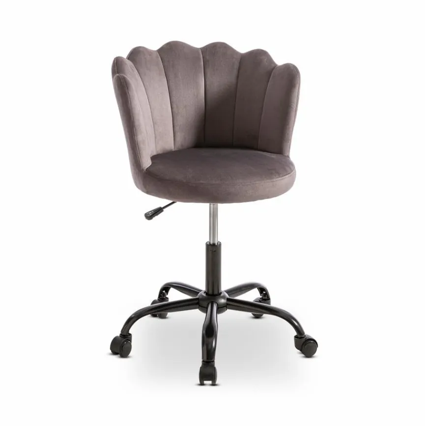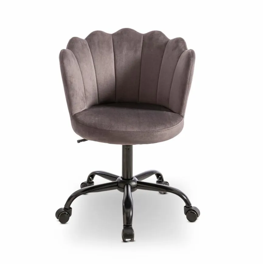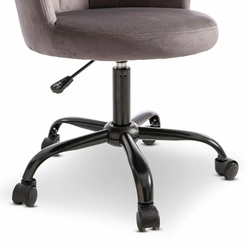 - Bezug aus Stoff in dunkelgrau, Gestell aus Metall in schwarz