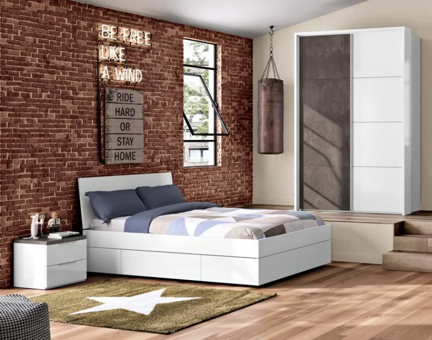 Der Schwebetürenschrank Systema 150×223 cm aus dem Hause Composad vereint ein attraktives Äußeres mit einer hohen Funktionalität. Im großzügigen Inneren bietet der Kleiderschrank viel praktischen Stauraum und sorgt für Ordnung. Darüber hinaus begeistert der Schwebetürenschrank Systema 150×223 cm von Composad durch ein modernes Äußeres, das von dem gelungenen Kontrast zwischen der Hochglanz- und der Steinoptik bestimmt wird.