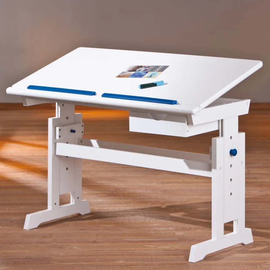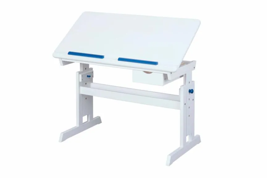 - Gestell aus massiver Kiefer mit Lack in weiß, Platte und Schubladenboden aus Holzwerkstoff (MDF) mit Lack in weiß