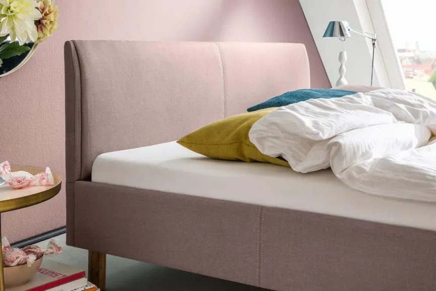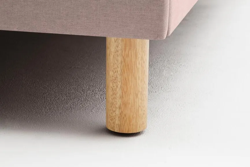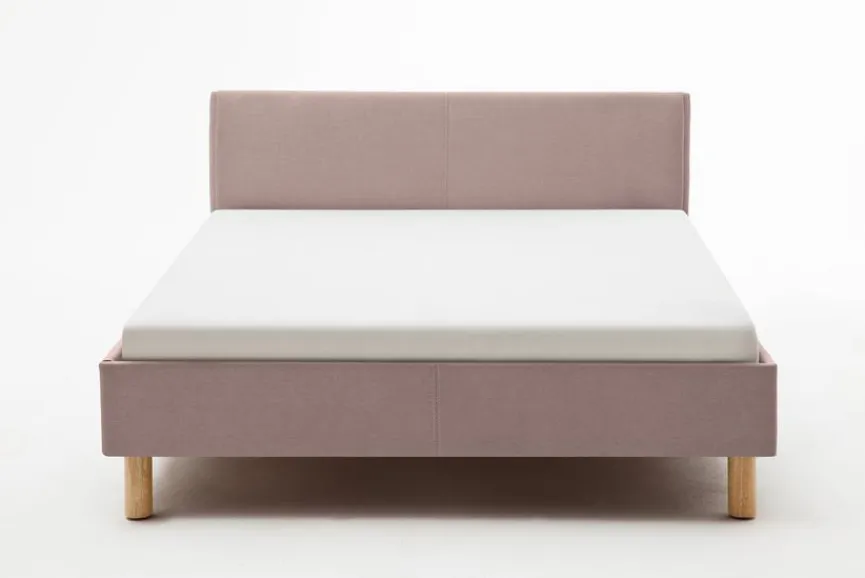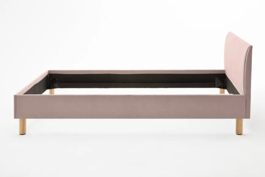 - Bettgestell aus Spanplatte, Füße aus massiver Eiche , Bezug aus 100 % Polyester in altrosa
