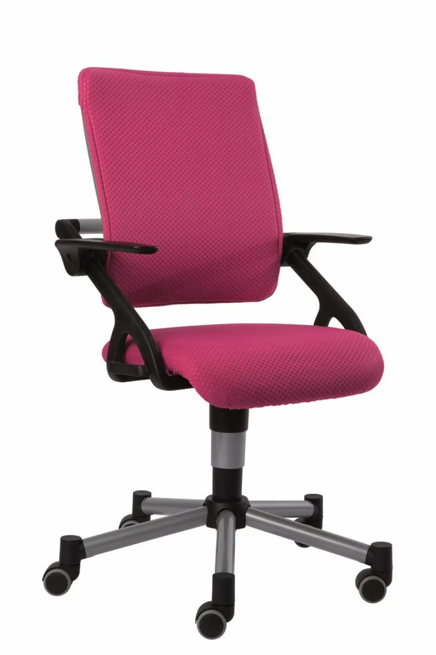 - Sitz aus Stoff in brombeere, Rücken aus Stoff in brombeere, Gestell/Fußkreuz aus Kunststoff in silbergrau, Armlehnen aus Kunststoff in schwarz