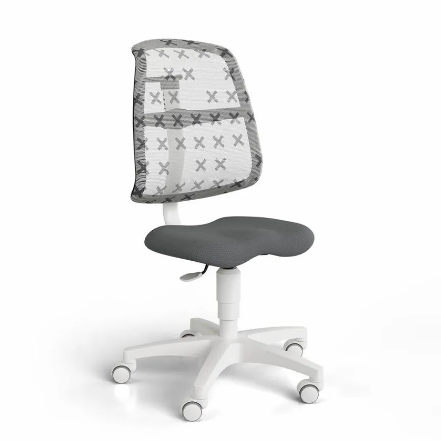 - Sitzbezug aus Stoff in grau, Rückenlehne mit atmungsaktivem Netzbezug in grau mit in „X“ in grau