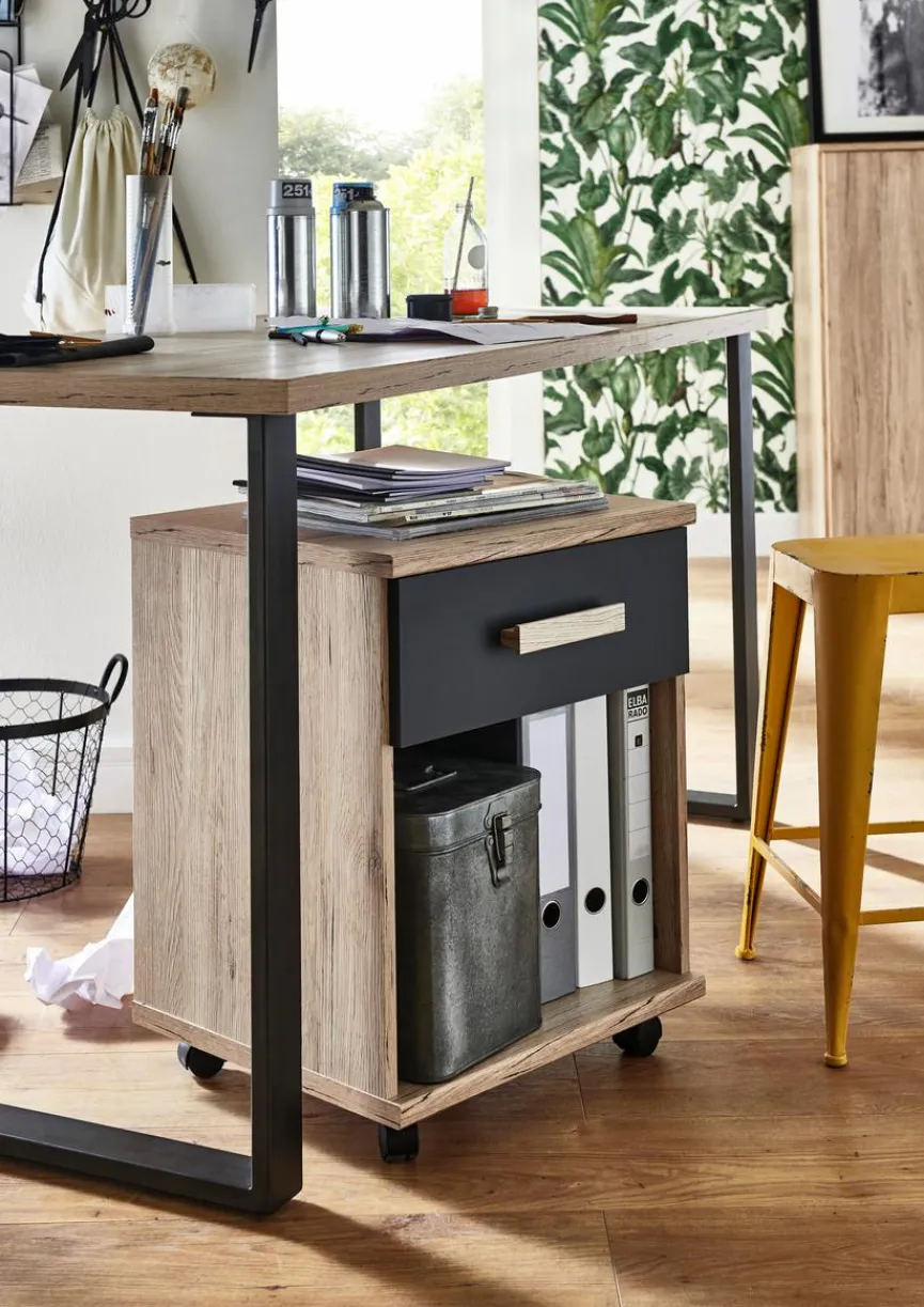Der Rollcontainer Cariba aus dem Hause WIMEX punktet optisch mit seinem modernen und stilvollen Design. Er stellt mit einem Schubkasten oben sowie einem offenen Fach unten praktischen Platz bereit. Auf diese Weise trägt der Rollcontainer Cariba der Marke WIMEX zur Ordnung bei.