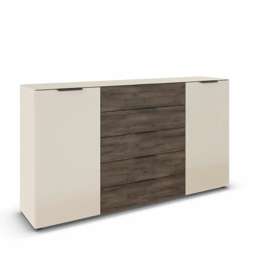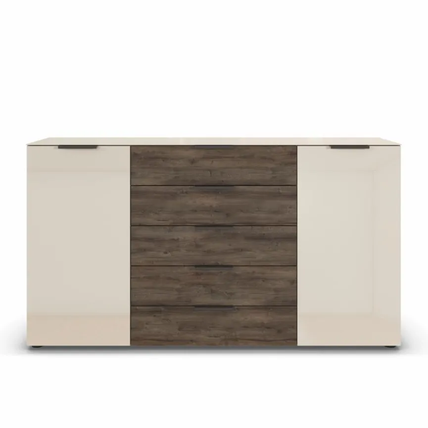 - Mit 2 Türen mit Türdämpfung und 5 Schubladen mit Softclose, Griffe aus Metall in Graphit