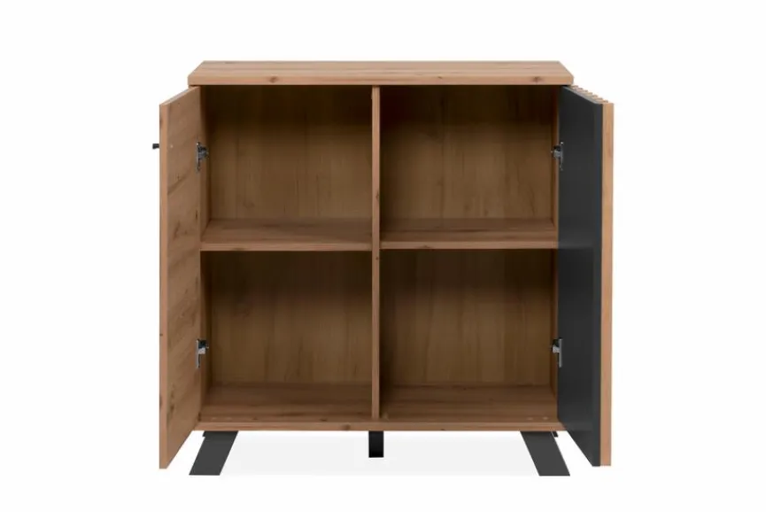 Mit der schicken Kommode Medan schaffen Sie zusätzlichen Stauraum im Flur, Wohn- , Schlaf- oder Arbeitsbereich. Hohe Füße und eine aparte Lamellenfront machen das kompakte Möbelstück zu einem Hingucker, der sich durch eine geradlinige Formensprache auszeichnet und Ihr Zuhause auf stilvolle Weise bereichert. Auf der Oberseite der hochwertigen Kommode Medan können Sie zudem hübsche Objekte wie Vasen und Windlichter präsentieren oder eine Lampe platzieren.