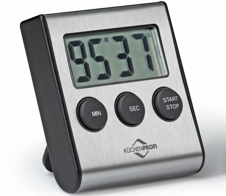 - Timer und Stoppuhr bis max. 99 Min. 59 Sek.