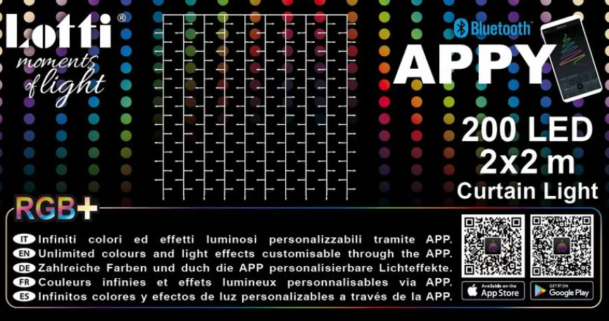 Der LED-Lichtervorhang Appy 200 von Lotti ist eine stilvolle Ergänzung Ihrer Haus- oder Wohnungseinrichtung. Ob kahle Wände oder Raumakzente, die stilvoll in Szene gesetzt werden – die Anwendungsmöglichkeiten sind vielfältig. Der LED-Lichtervorhang Appy 200 beinhaltet im Lieferumfang einen passenden Trafo sowie einen Stecker für den Stromanschluss.