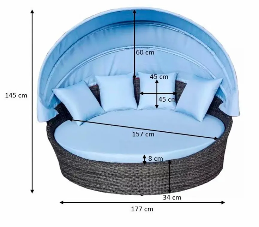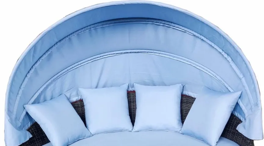Mit der Sonneninsel Fiesta sichern Sie sich ein traumhaftes Möbelstück für Ihren Garten. Die kreisrunde Liegefläche lädt zum Entspannen ein, wobei das Dach für wunderbaren Schatten sorgt. Darüber hinaus begeistert die Sonneninsel Fiesta mit ihrem zeitlos schönen Design, das sich in jede Umgebung einfügt.