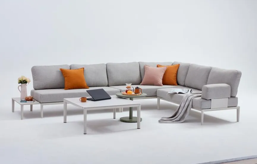 - Set besteht aus 2x 2-Sitzer, 1xEcksofa, 1x Seitentisch und 1x Couchtisch