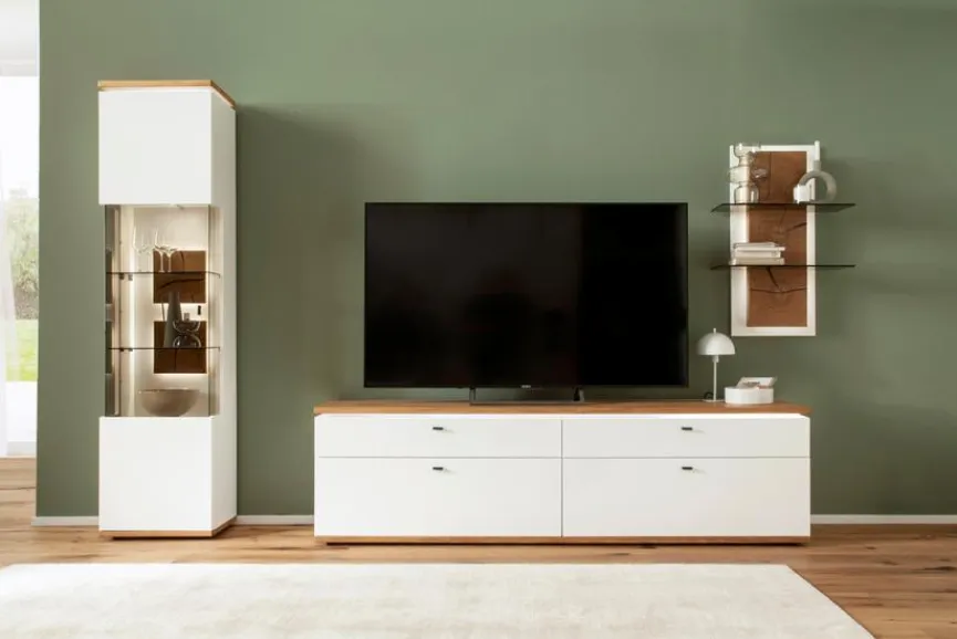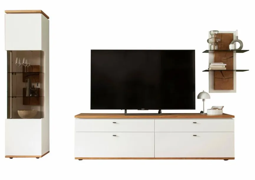 - Bestehend aus Vitrine, TV-Lowboard und Wandregal