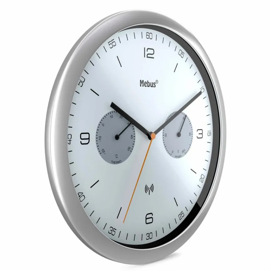 Die Funkwanduhr Ø 26 cm der Marke Mebus ist etwas ganz Besonders. Sie ist ausgestattet mit einem Thermo- und Hygrometer, sodass Sie nicht nur die Uhrzeit, sondern auch Temperatur und Luftfeuchtigkeit im Raum anzeigen kann. Damit eignet sich die Funkwanduhr Ø 26 cm von Mebus wunderbar dafür, um angenehme Raumbedingungen herzustellen.