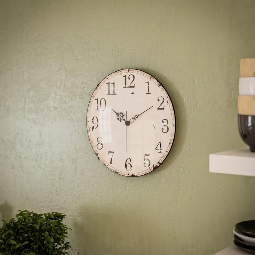 Mit der Quarzwanduhr 19625 Ø 35 cm aus dem Hause Mebus sorgen Sie für echten Vintage-Chic in allen Zimmern des Wohnbereichs. Vor allem die gewollten Used-Effekte und die klassisch designten Zeiger fallen positiv auf. Zudem ermöglichen die großen Ziffern auf der Quarzwanduhr 19625 Ø 35 cm das leichte Ablesen der Zeit.